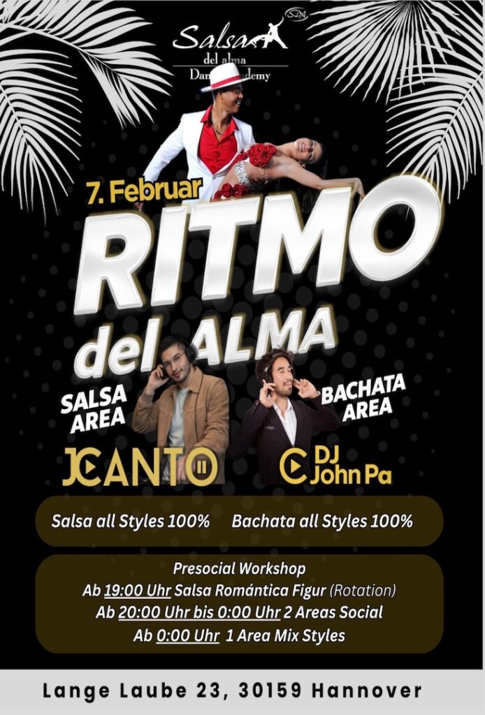 Zum 01.01.2026 wird sich die Struktur von Salsa del Alma verändern: Wir werden uns organisatorisch von Salsa del Alma Braunschweig trennen. Die Tanzschule in Braunschweig wird ab diesem Zeitpunkt von Ahmet Bayraktaroglu eigenständig geführt – vielen von euch seit Jahren bekannt als Tanzlehrer, DJ und Veranstalter bei Salsa del Alma Braunschweig.