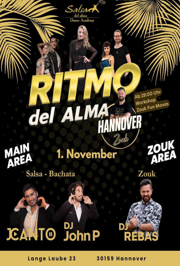 Unsere Salsa del alma Party in Hannover findet jeden ersten Samstag im Monat in Hannover und jeden 2. und 4. Monat in Braunschweig statt. Hier (LINK) findest du unsere anstehenden Veranstaltungen. Sei dabei!